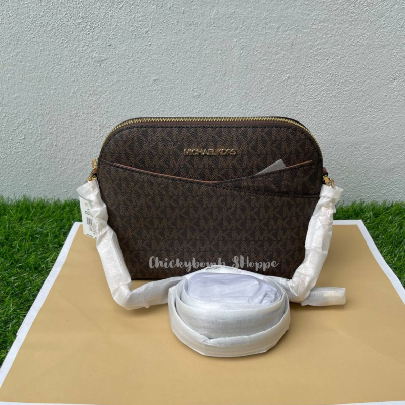 (OTW) Michael Kors Jet Set Travel Medium Dome Crossbody in Signature Brown