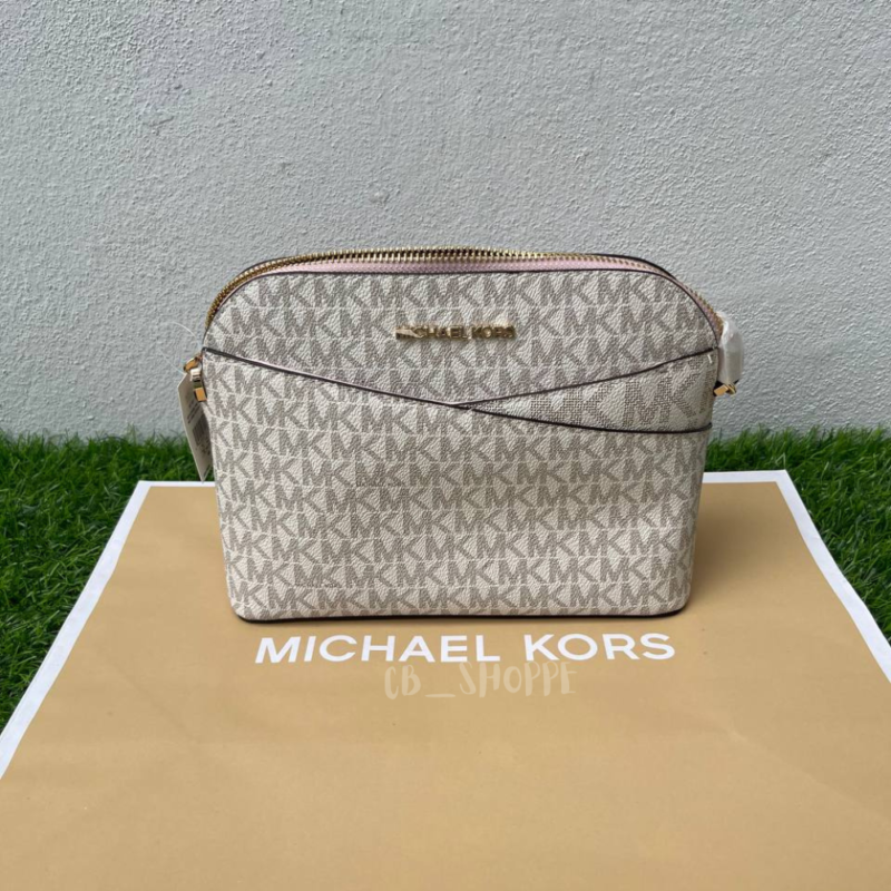 (READY STOCK) Michael Kors Jet Set Travel Medium Dome Crossbody Bag in Signature Chalk/Powder Blush ( 35F1GTVC6B-PWD)
